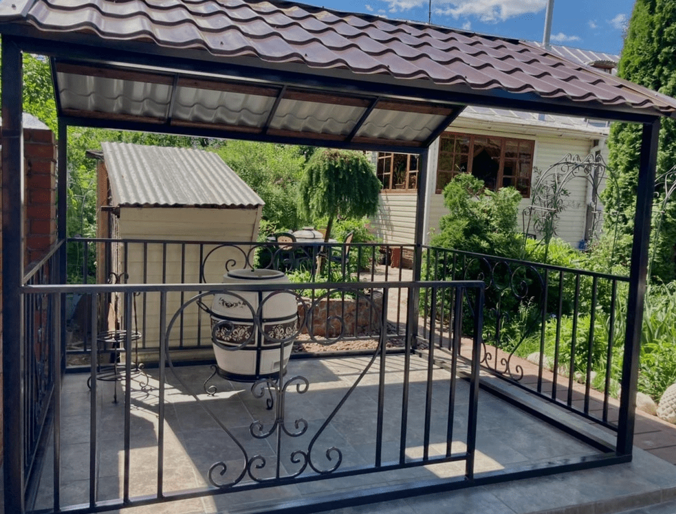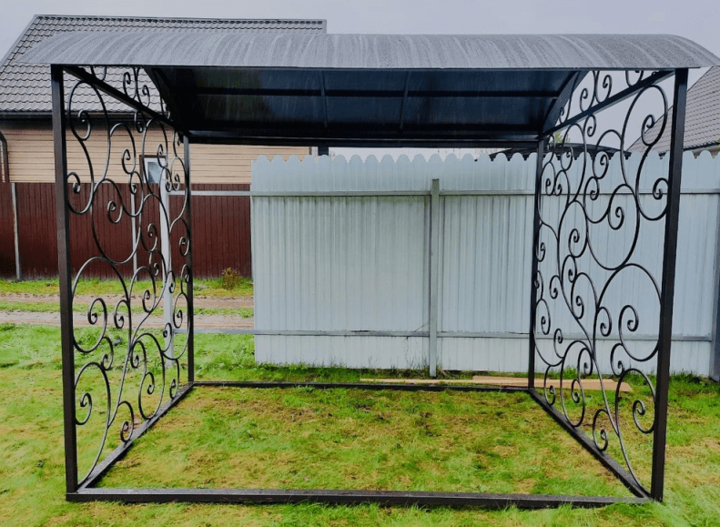 Каркас беседки из металла с коваными элементами, навес для мангальной зоны 3х2х2,5 м
