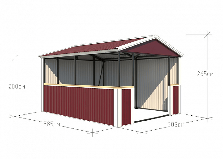 Открытая летняя беседка 3х2х2,5 м с двускатной кровлей из металлочерепицы