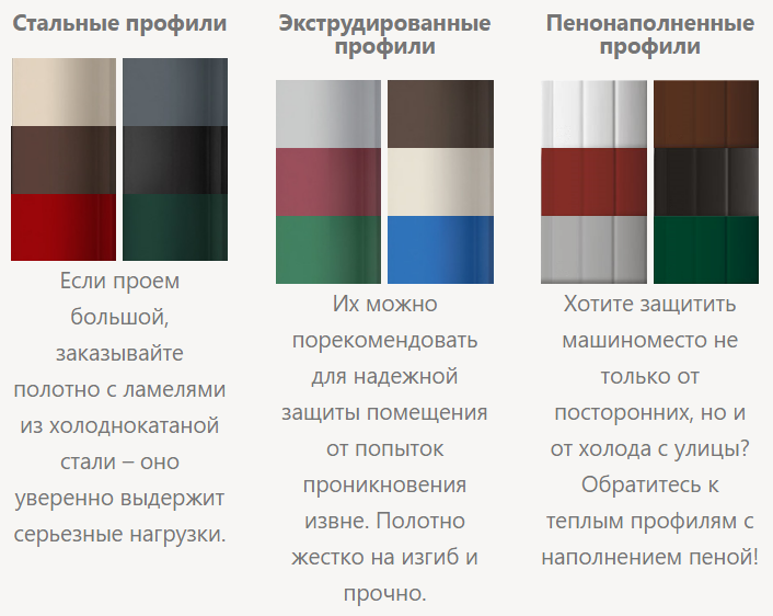 - Теплоизоляция и герметичность. Полотно, выполненное из пенонаполненных профилей, по периметру имеет качественное уплотнение. Вместе это гарантирует тепло и экономию средств на отопление;