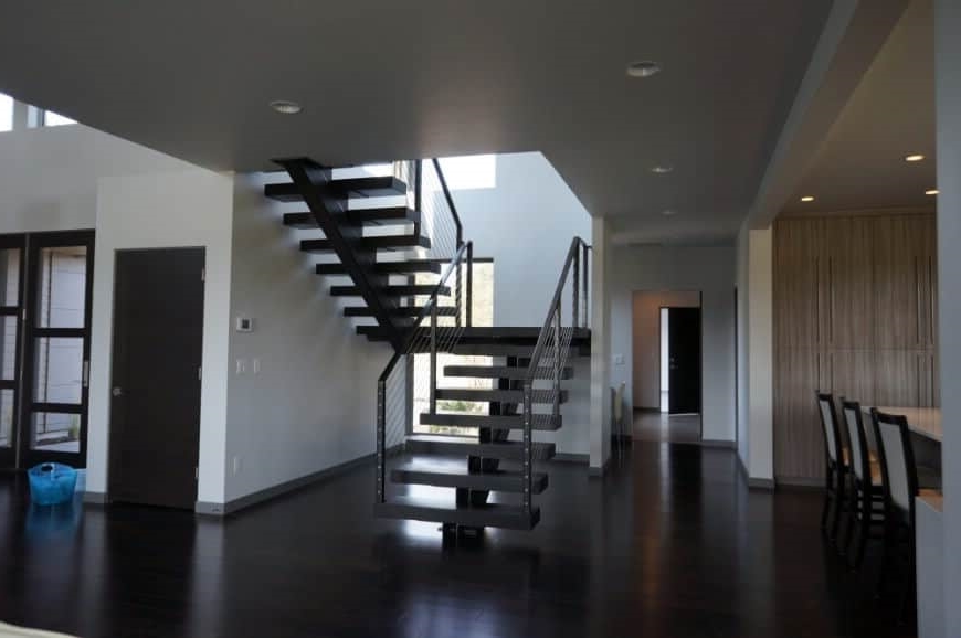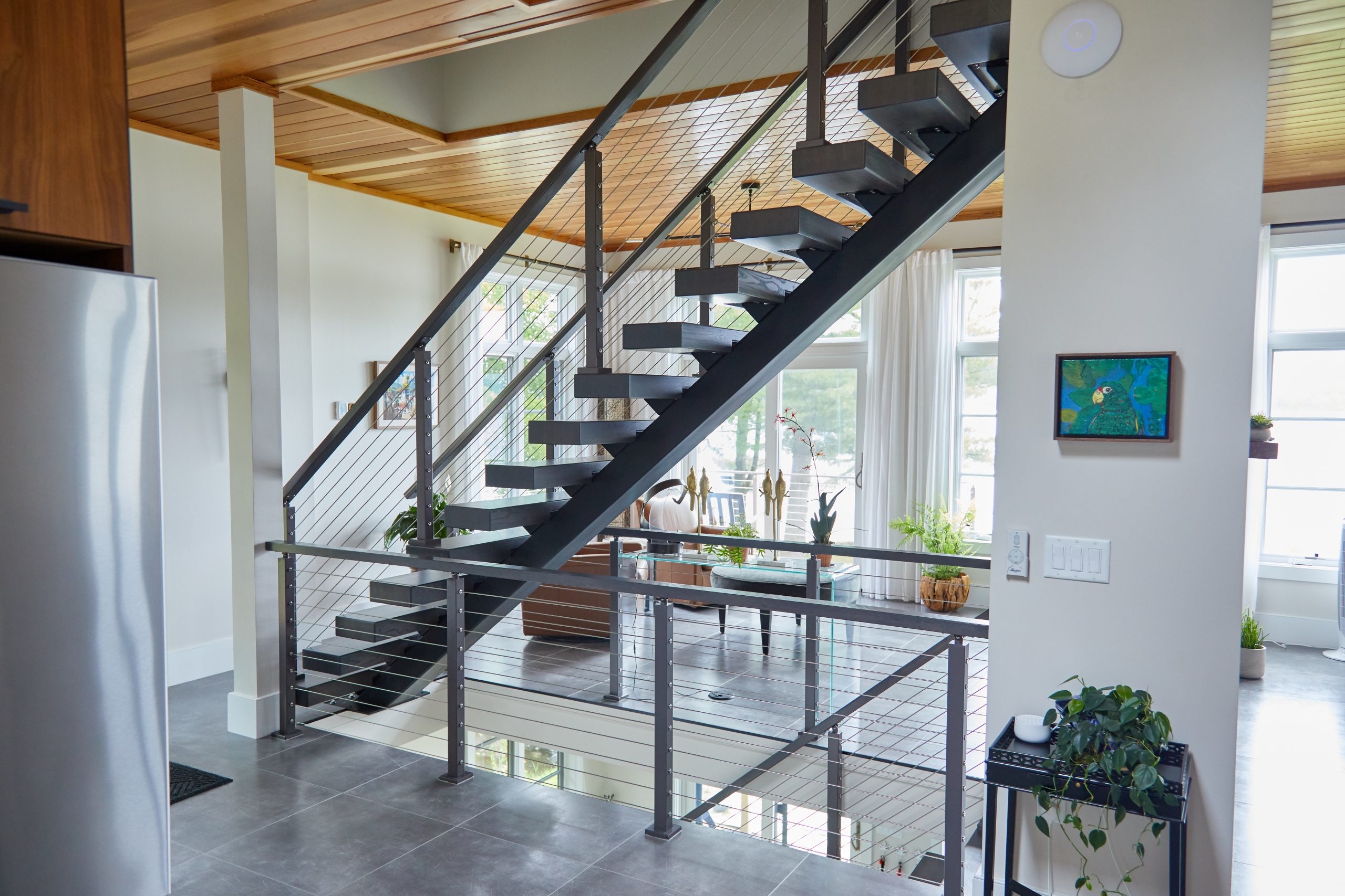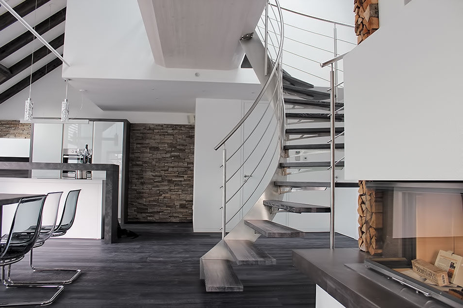 У нас вы можете заказать лестницы на второй этаж дома полностью из металла или на металлическом каркасе, где ступени идут из натурального массива дерева или стекла. Предлагаем прямые и поворотные конструкции, винтовые лестницы на косоурах и тетивах. Мы делаем конструкции в уникальном дизайне по индивидуальным размерам заказчика.