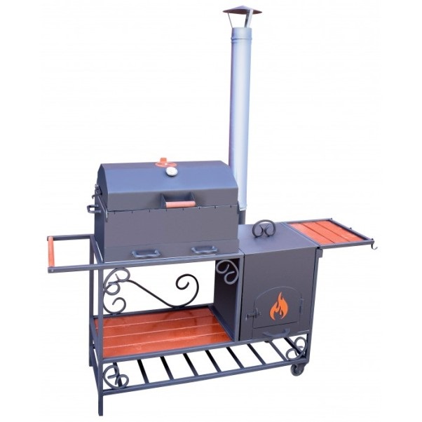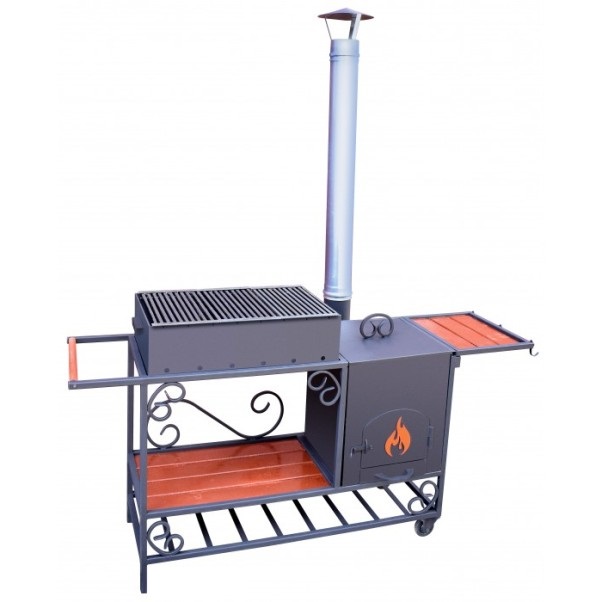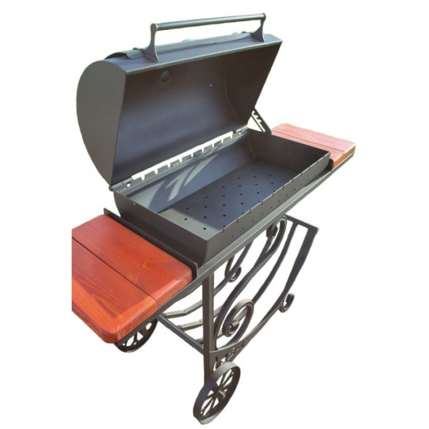 Мобильный барбекю комплекс: кованый мангал на колсах с решёткой гриль