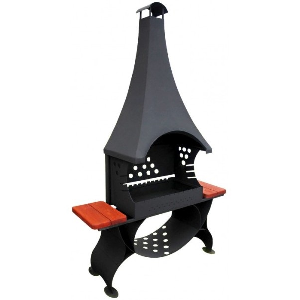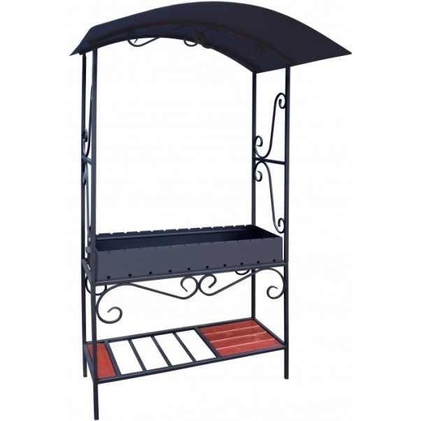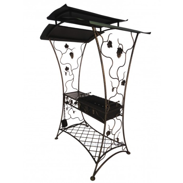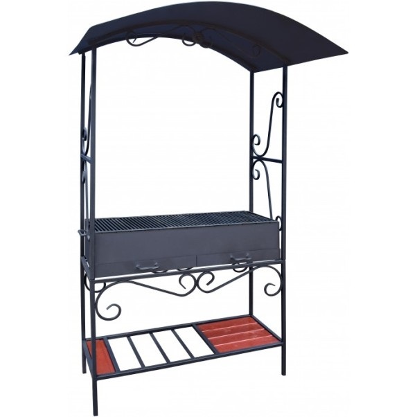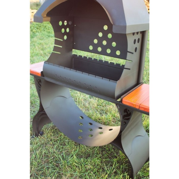 Мангал дачный с крышей, подставкой для казана и декоративными узорами