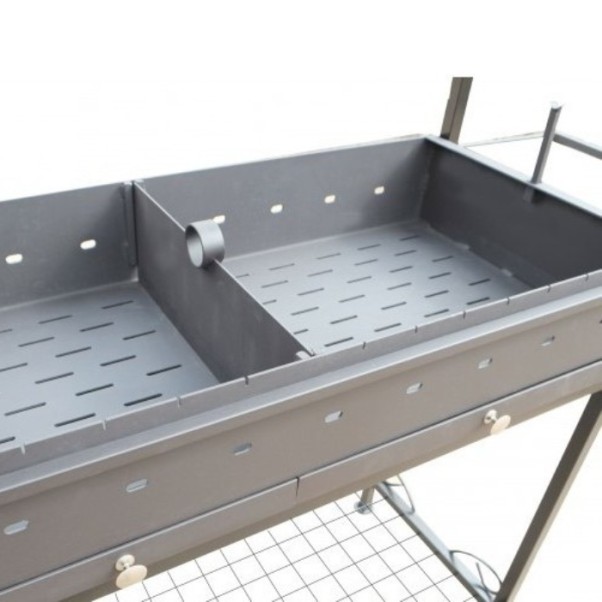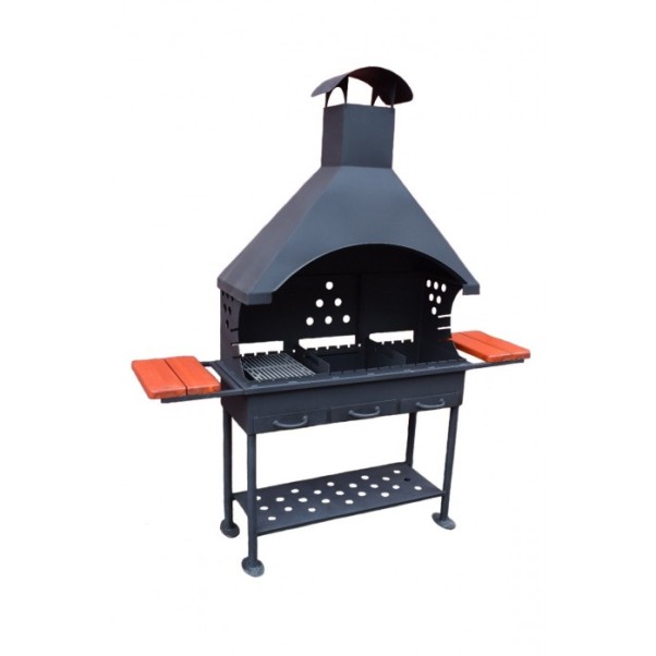 Профессиональный мангал с крышей, зольниками и выдвижными столиками