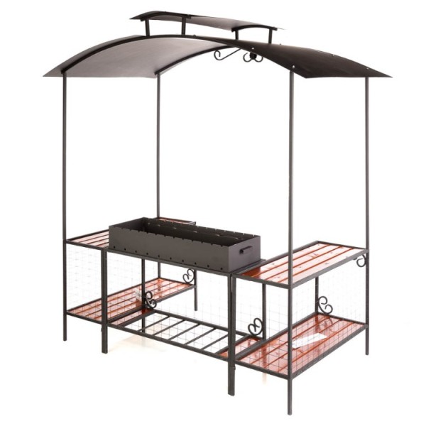 Мангал с крышей и метровой жаровней, двумя столиками и дровницей