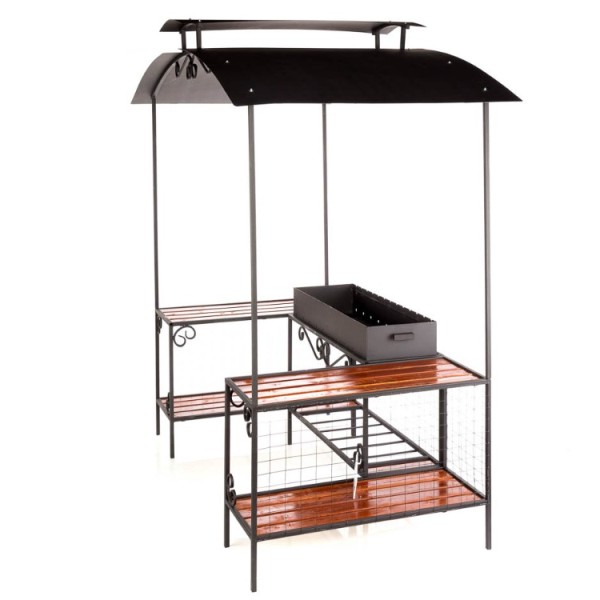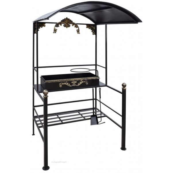 Кованный мангал на колёсах с крышей, жаровней, столиком и дровницей