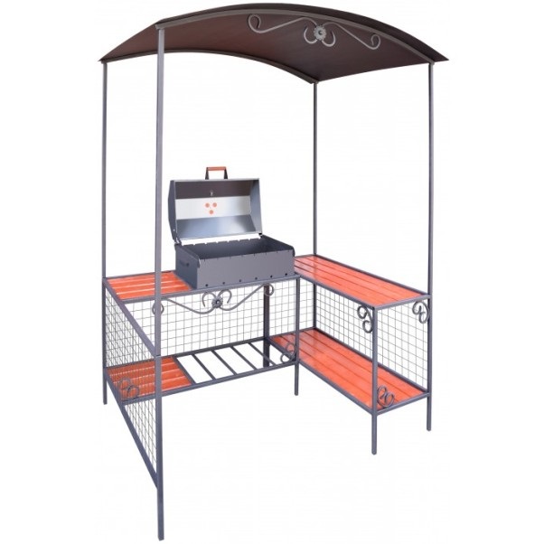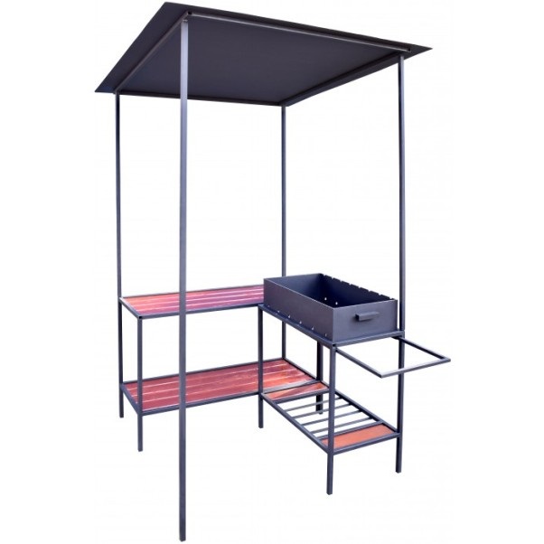 Мангал дачный с навесом, расширенной жаровней, зольником и столиком