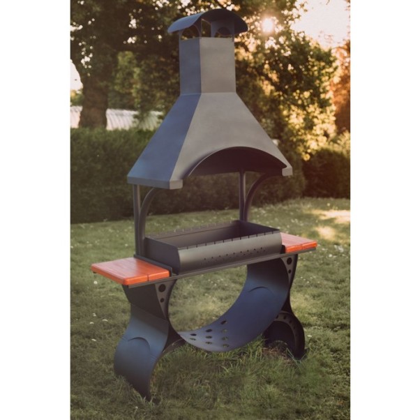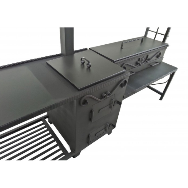 Цельносварной мангал с высоким дымоходом и боковыми столиками