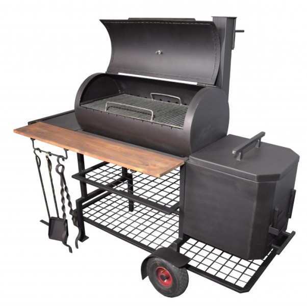 Барбекю гриль на углях с дровницей и боковыми столиками