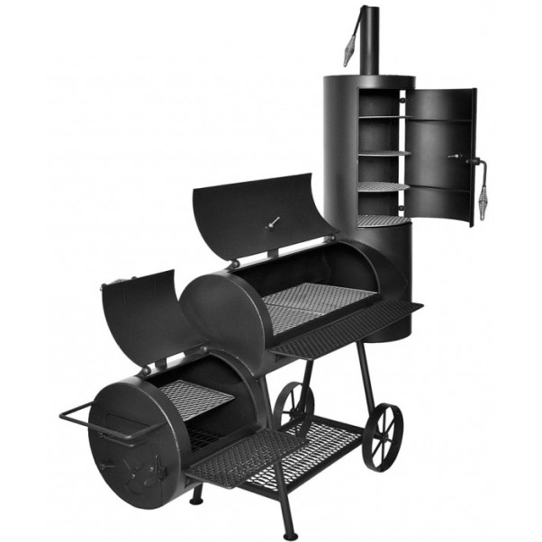 Кованный мангал барбекю гриль комплекс на колёсах с цилиндрической жаровней