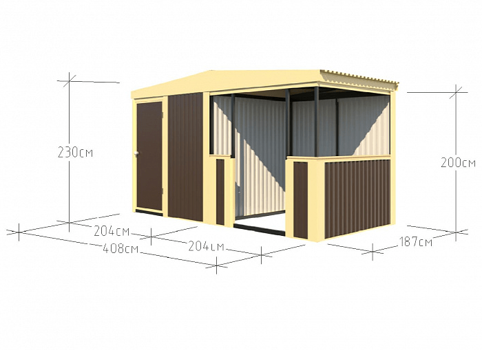 Большая 5х3,5х3,5 м беседка из металлопрофиля с обшивкой и двускатной кровлей из поликарбоната