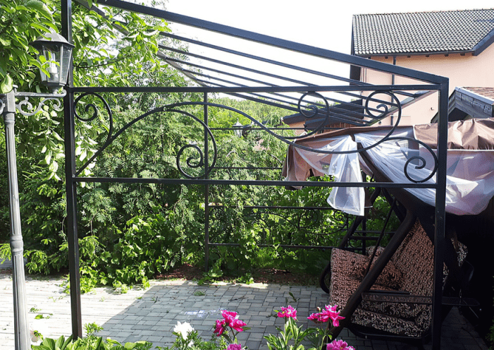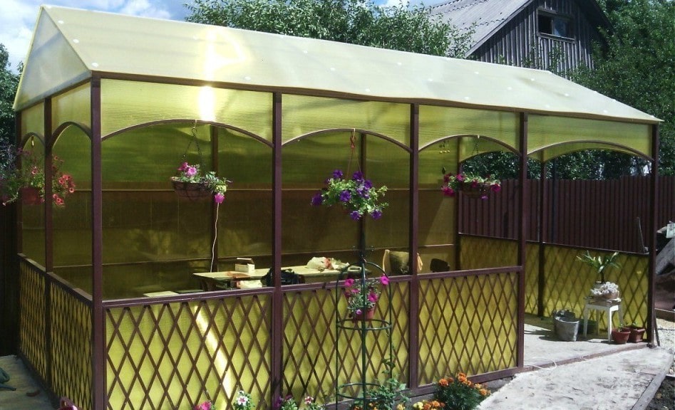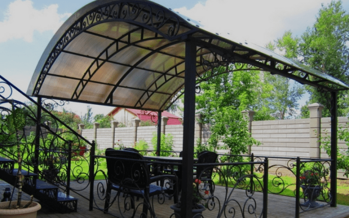 Летняя беседка из поликарбоната на металлокаркасе 3х4х3 м с коваными элементами