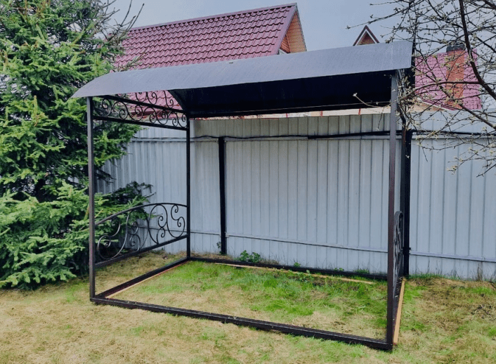Каркас беседки из металла с коваными элементами, навес для мангальной зоны 3х2х2,5 м