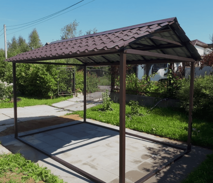 Открытая летняя беседка 3х2х2,5 м с двускатной кровлей из металлочерепицы