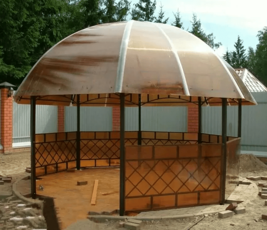 Садовая беседка из поликарбоната на металлическом каркасе с купольной крышей 4х4х3,8м
