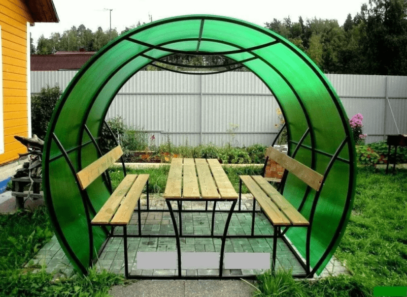 Дачная беседка из поликарбоната и металлического каркаса с арочной кровлей 2х2х2,5 м