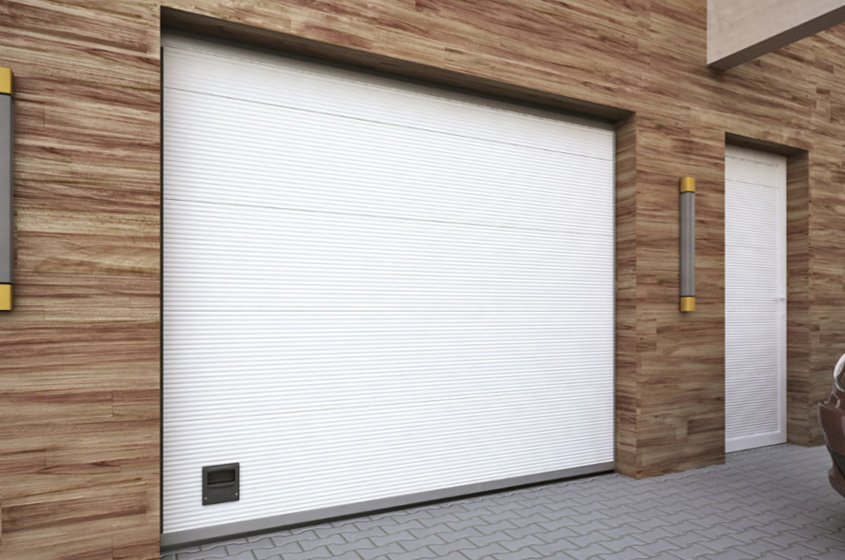 - Универсальность. Ролеты можно установить и в маленький гараж с низкой притолокой, и в узкий проем с небольшими простенками, где подъемные или секционные модели просто не встанут. В то же время жесткая фиксация на систему концевого захвата позволяет рекомендовать эти модели для широких въездов (до 7 и более метров);
