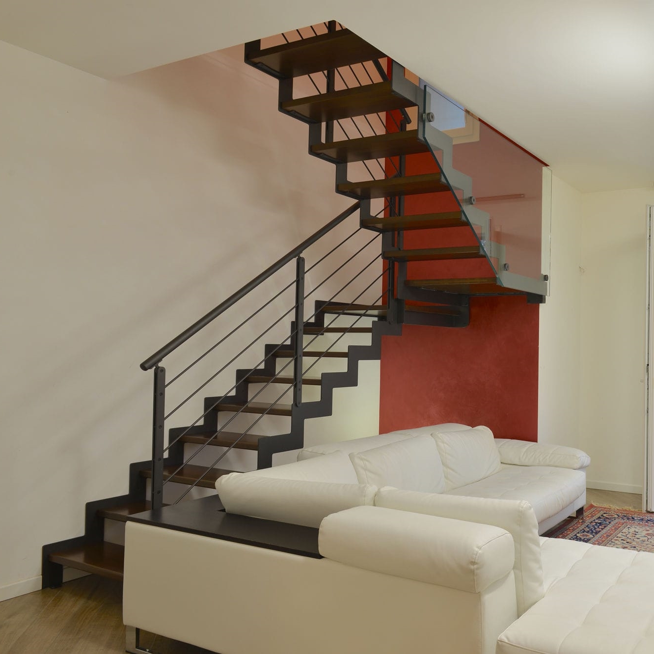 У нас вы можете заказать лестницы на второй этаж дома полностью из металла или на металлическом каркасе, где ступени идут из натурального массива дерева или стекла. Предлагаем прямые и поворотные конструкции, винтовые лестницы на косоурах и тетивах. Мы делаем конструкции в уникальном дизайне по индивидуальным размерам заказчика.