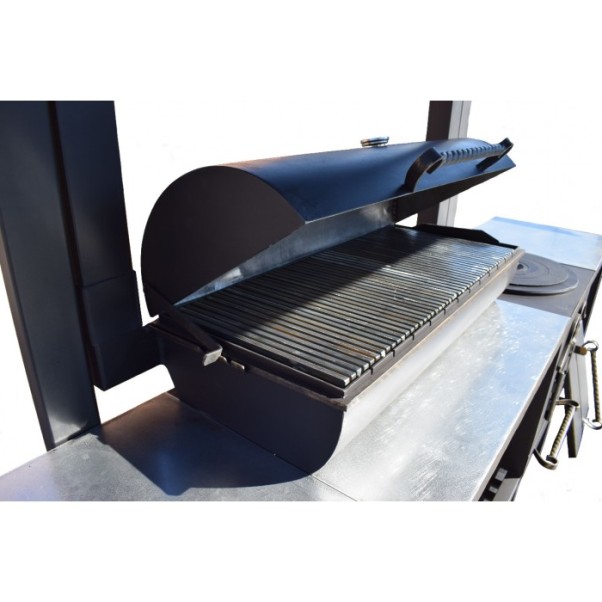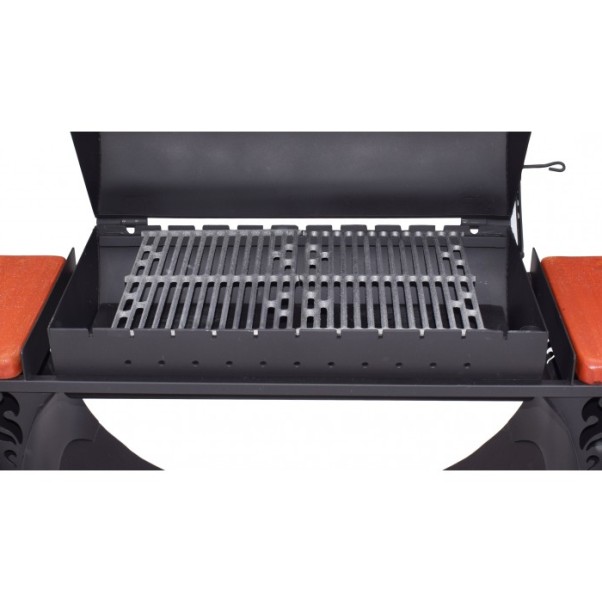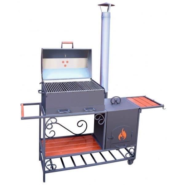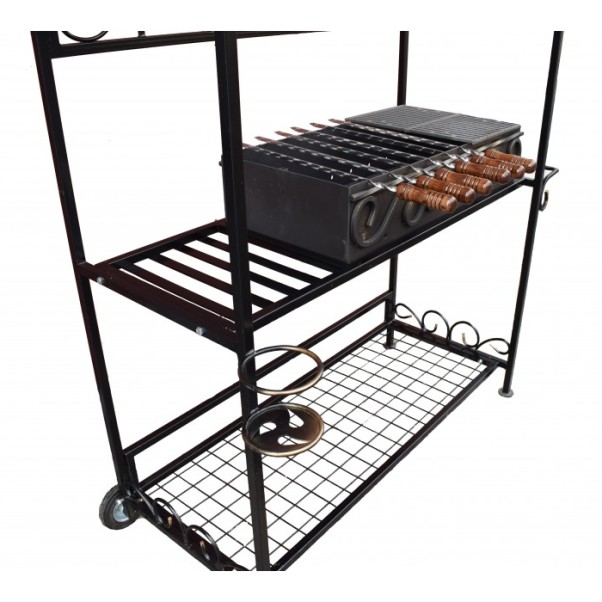 Мобильный барбекю комплекс: кованый мангал на колсах с решёткой гриль