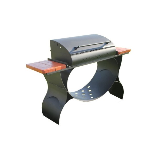 Барбекю гриль на углях с дровницей и боковыми столиками