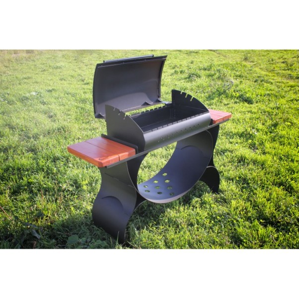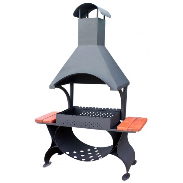 Мангал с крышей и метровой жаровней, двумя столиками и дровницей