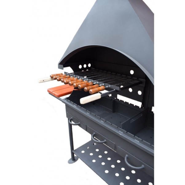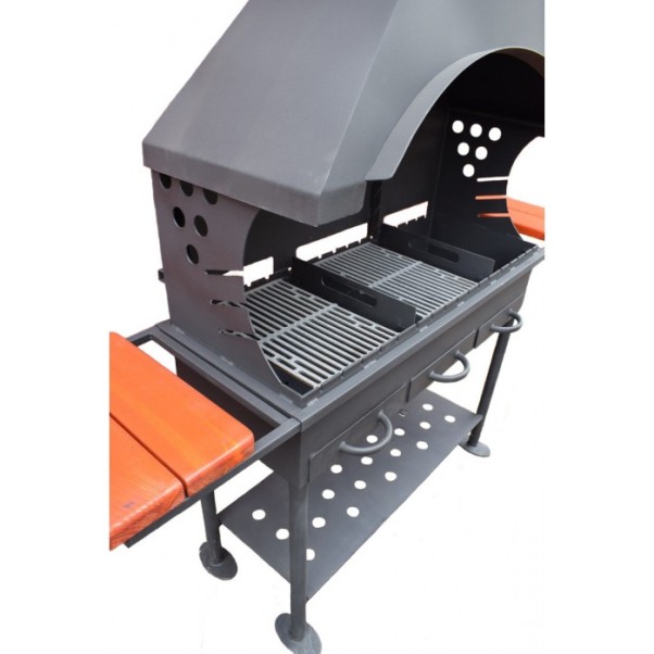 Профессиональный мангал с крышей, зольниками и выдвижными столиками