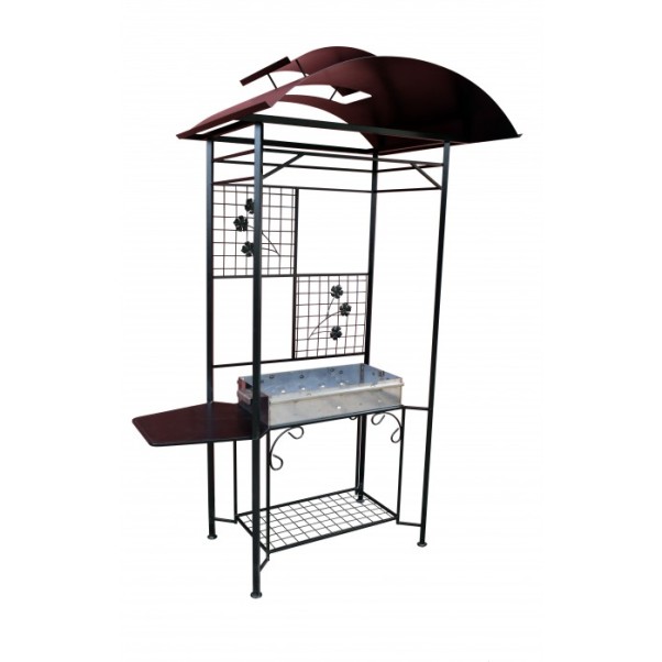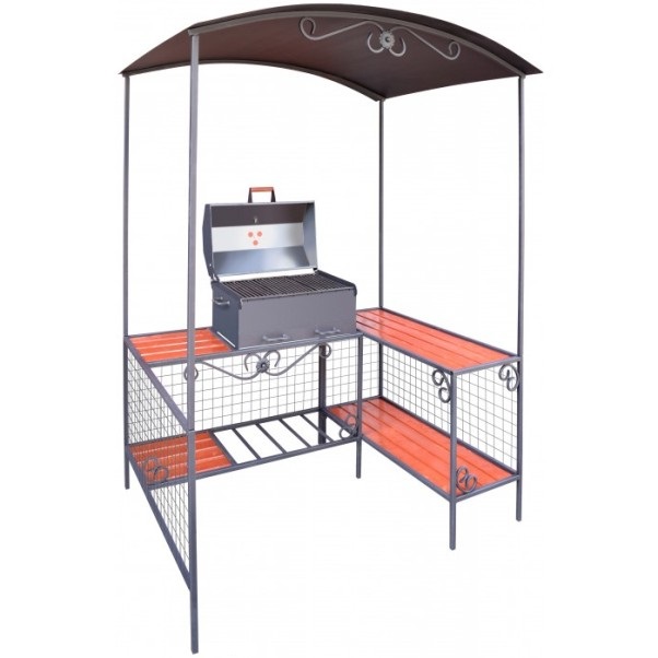 Мангал дачный с навесом, расширенной жаровней, зольником и столиком