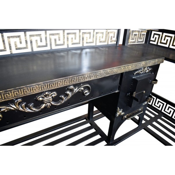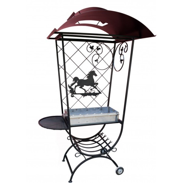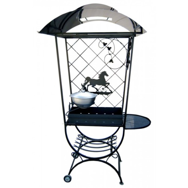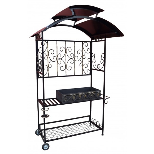 Кованный мангал на колёсах с крышей, жаровней, столиком и дровницей