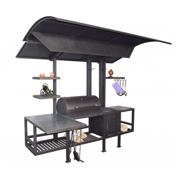 Мангальный комплекс класса Люкс с крышей, печью для казана и вытяжкой