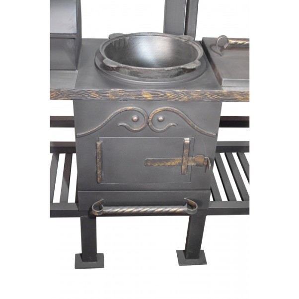Мангал барбекю гриль комплекс с печкой под казан и съёмным столиком