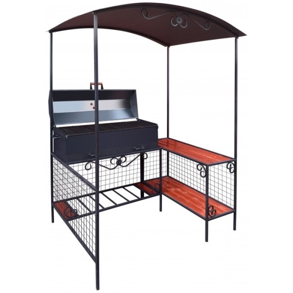 Мангал дачный с крышей, подставкой для казана и декоративными узорами