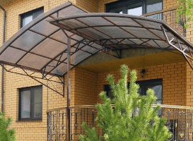 - Навесы из поликарбоната – недорогие и прочные конструкции, которые подойдут для дома и дачи.