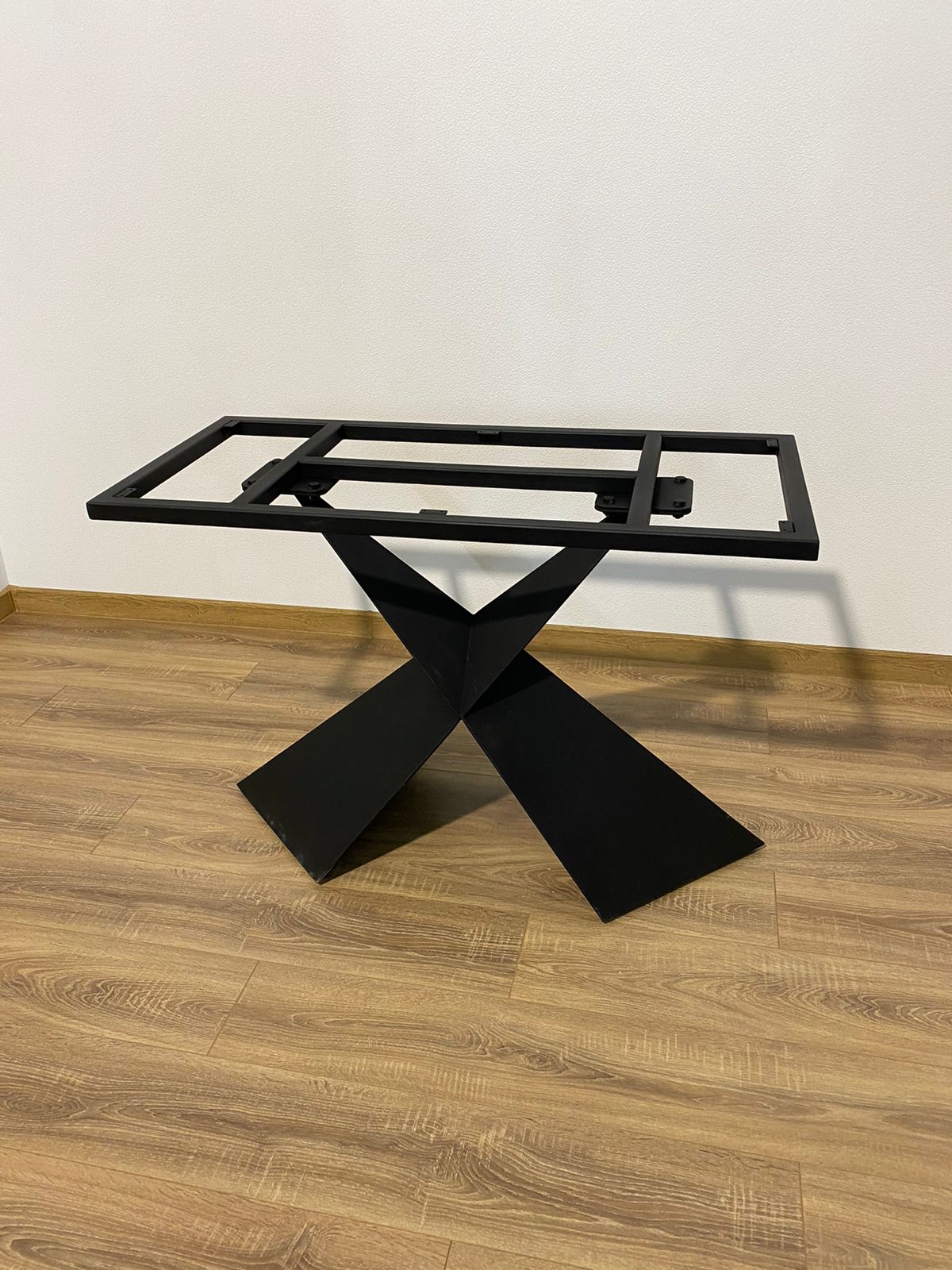 Спроектировали и произвели шикарное дизайнерское подстолье в стиле Лофт. Сложная геометрия придает массивность конструкции. Подстолье можно использовать как под деревянные столешницы так и под мрамор или гранит. Толщина металла 6мм, цвет черный моар. Смотрите варианты металлических подстольев, которые мы производим.