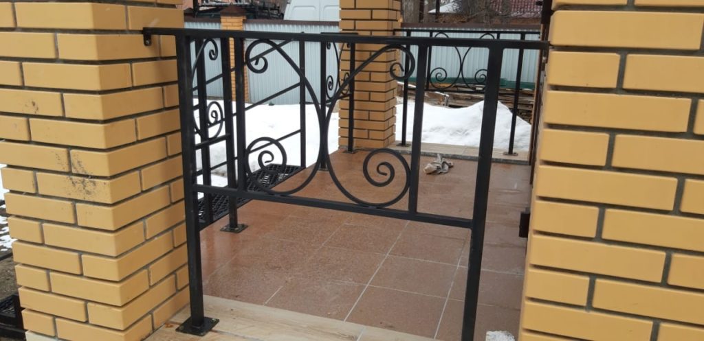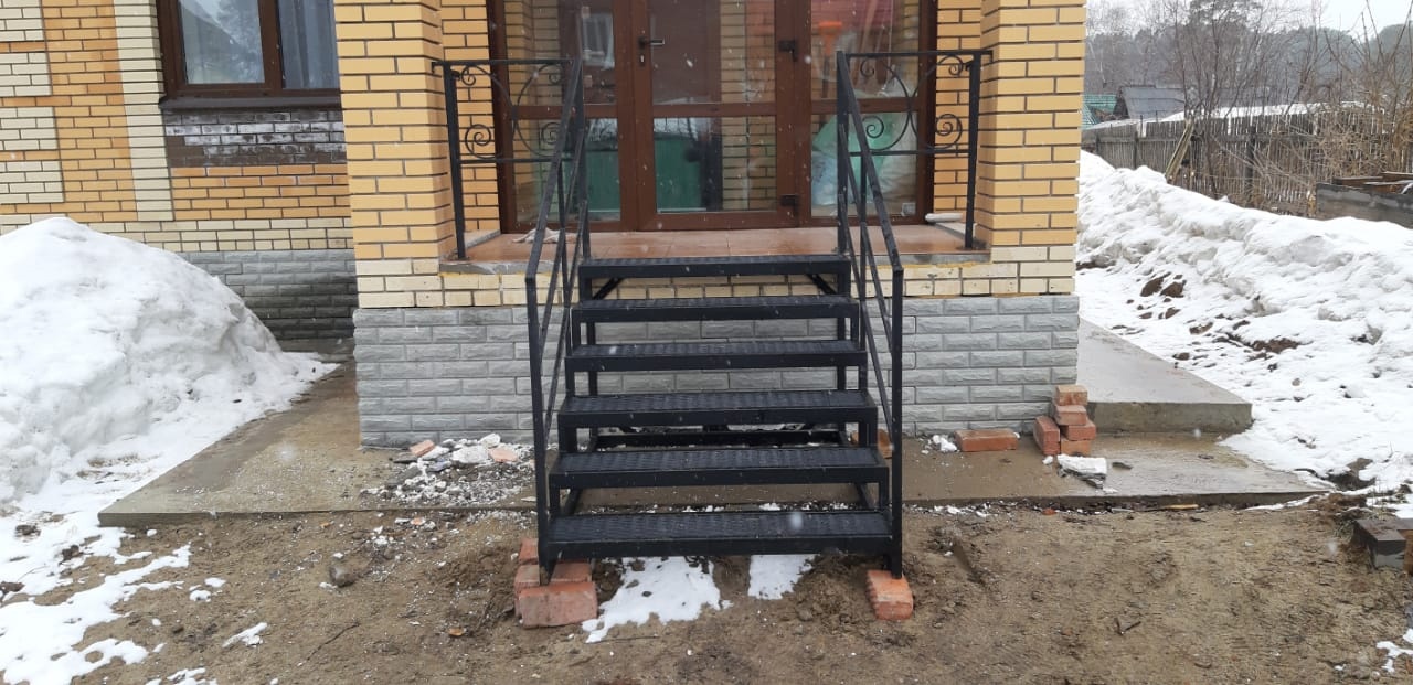 Замерили, спроектировали, произвели, покрасили, смонтировали лестницу и перила на входную группу с элементами художественной ковки.